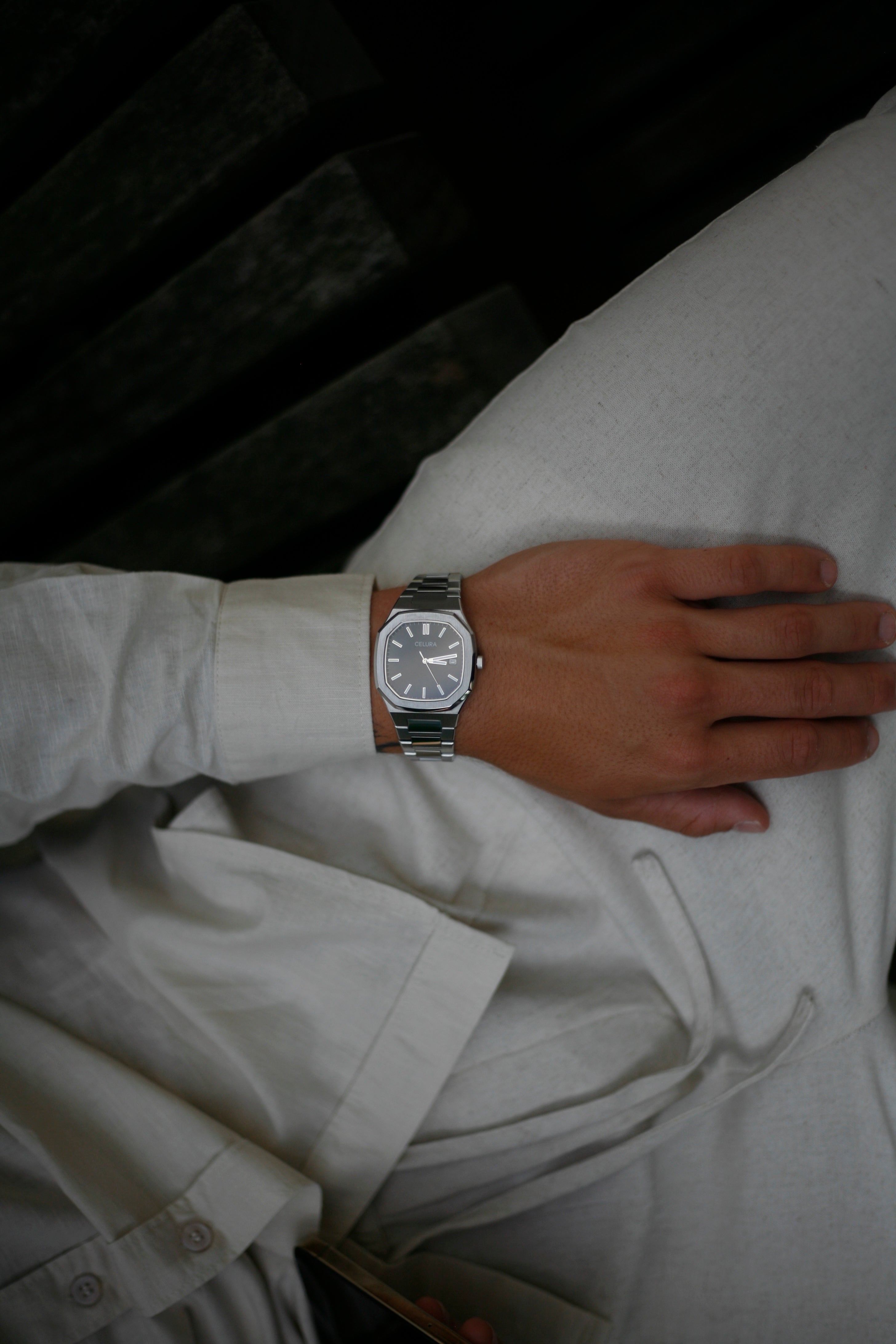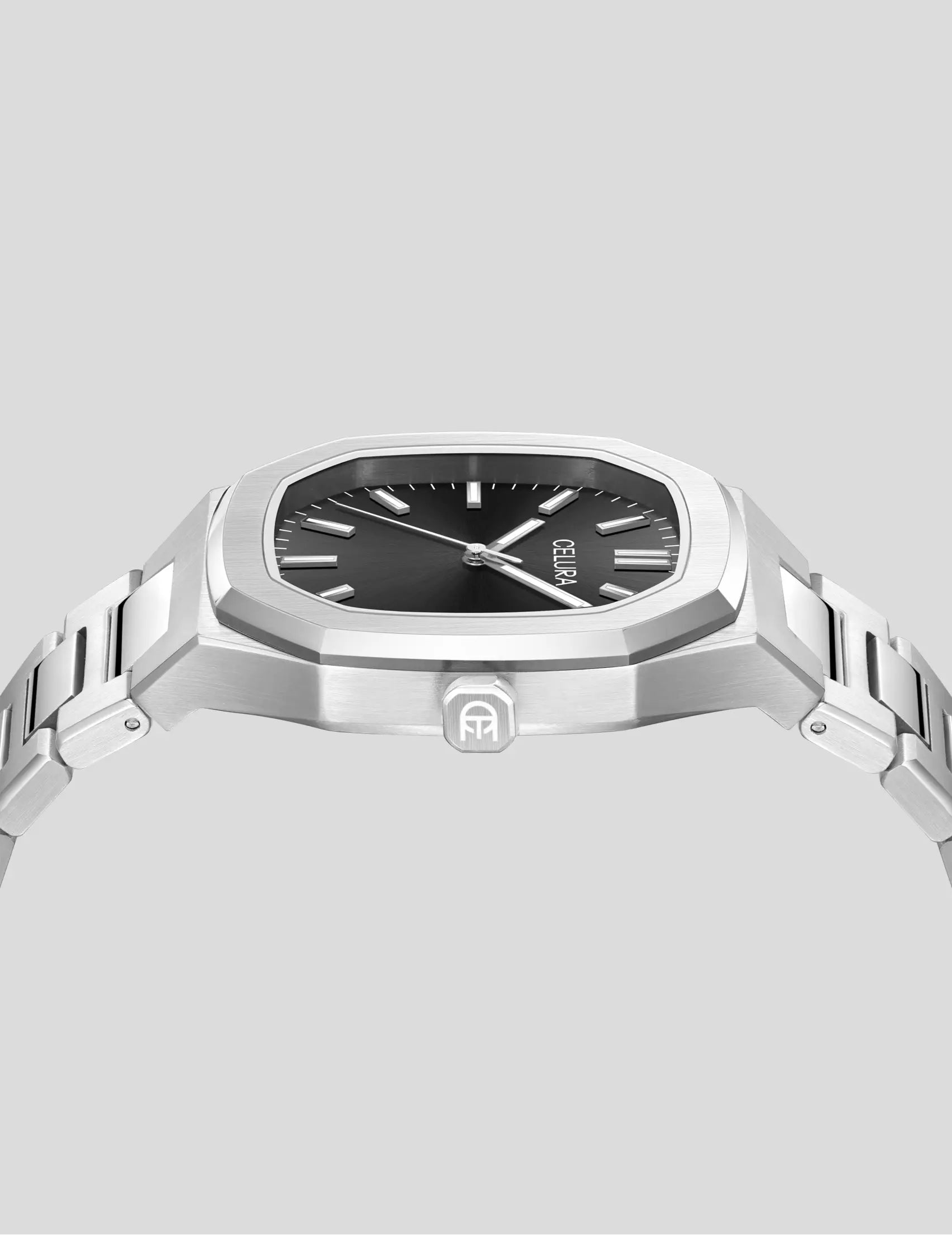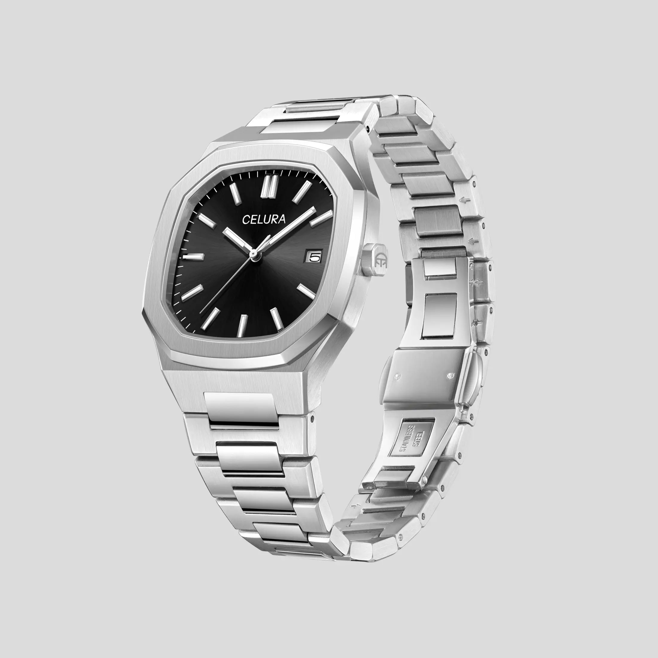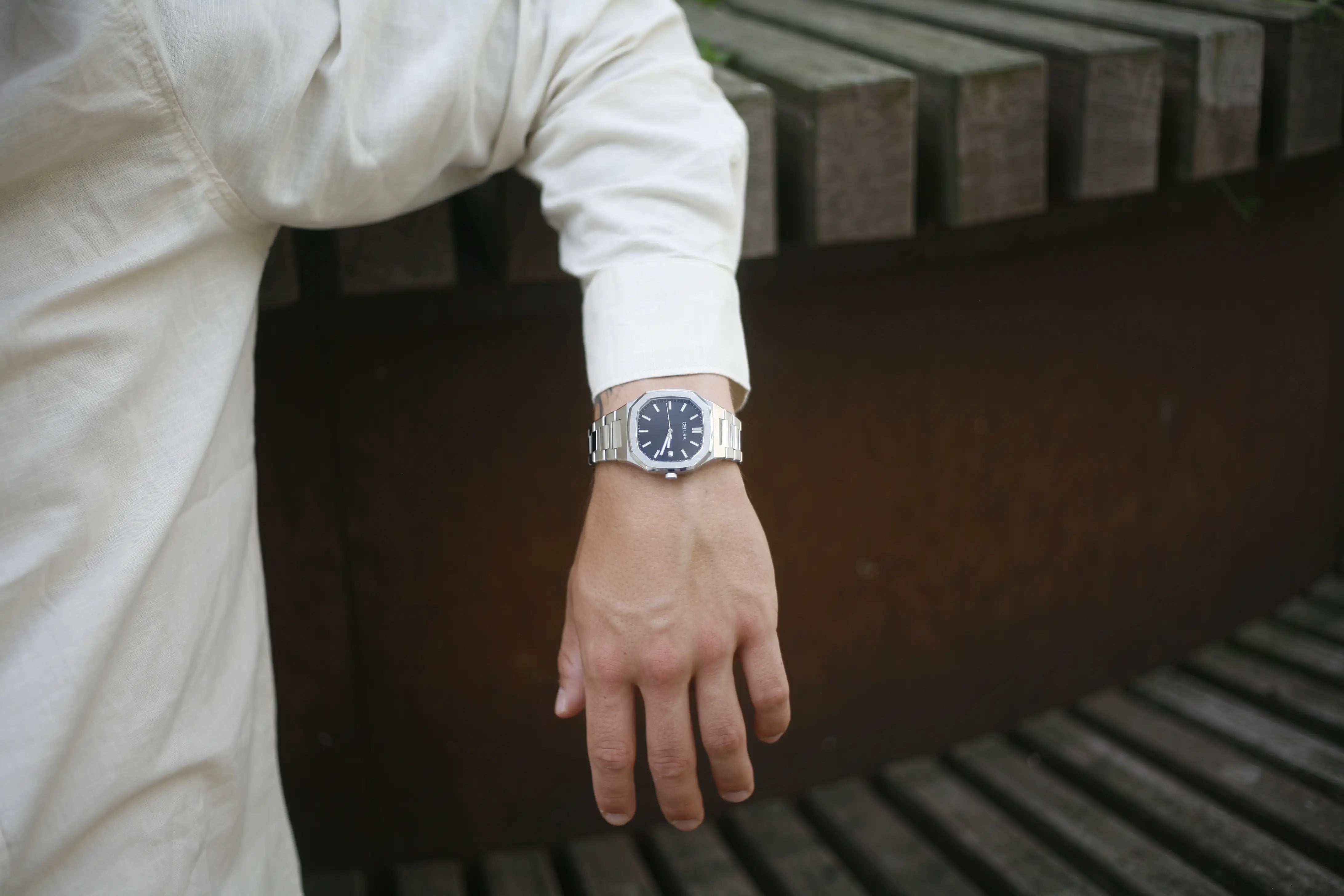 Size — At CELURA we make sure your watch fits perfectly. After your purchase we will explain how you can easily measure your wrist size. If you don’t want this or if it is a gift, we give you a free link tool to adjust the size yourself. The watch arrives at full length and can be adjusted with the included tool. Any removed links will be sent in the package so you can re-add them if you want.